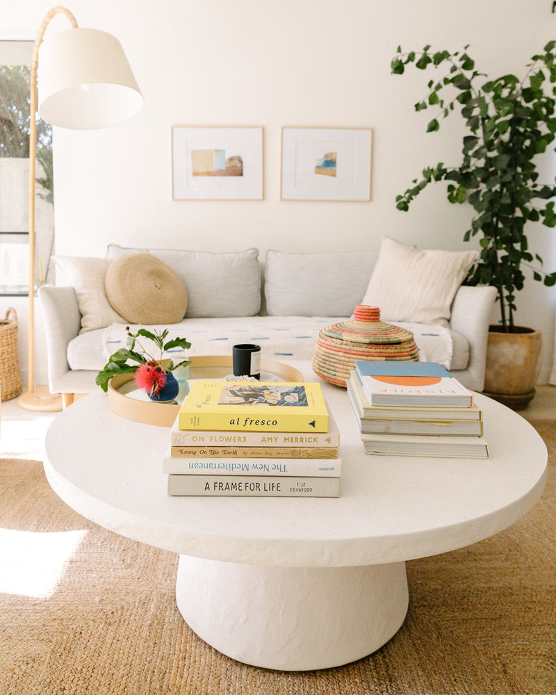 A: I love our coffee table as it’s such a centering piece in our home, and it’s really the only big piece we bought when we moved into this place about a year and a half ago. It’s my favourite spot to display my beloved books and treasured objects, and it regularly becomes a spot for playing games, doing puzzles, drawing, and doing special activities together as a family.