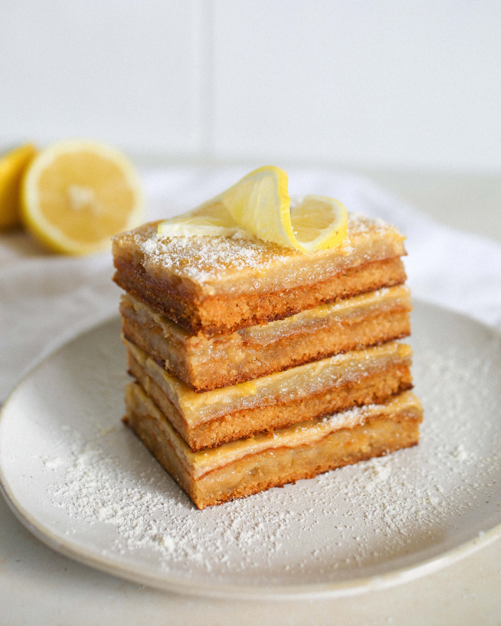 The lemon layer is made with fresh lemon juice, zest, and arrowroot for a tangy and bright flavor. Enjoy these bars as a treat for dessert or as a midday snack. This recipe for healthy lemon bars is the perfect balance of sweet and tart, and it's gluten-free, grain-free, and refined sugar-free! The base layer is made from almond flour, arrowroot, ghee, maple syrup, and vanilla bean extract, while the lemon layer features fresh lemon juice and zest, eggs, maple syrup, arrowroot, and coconut flour.