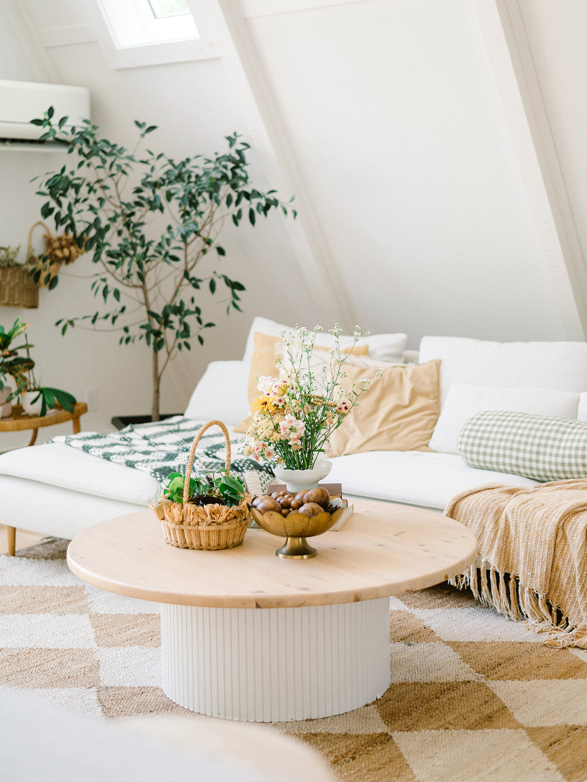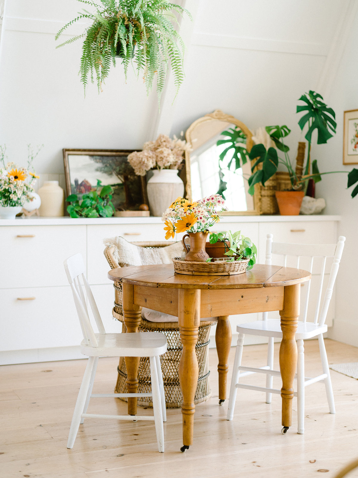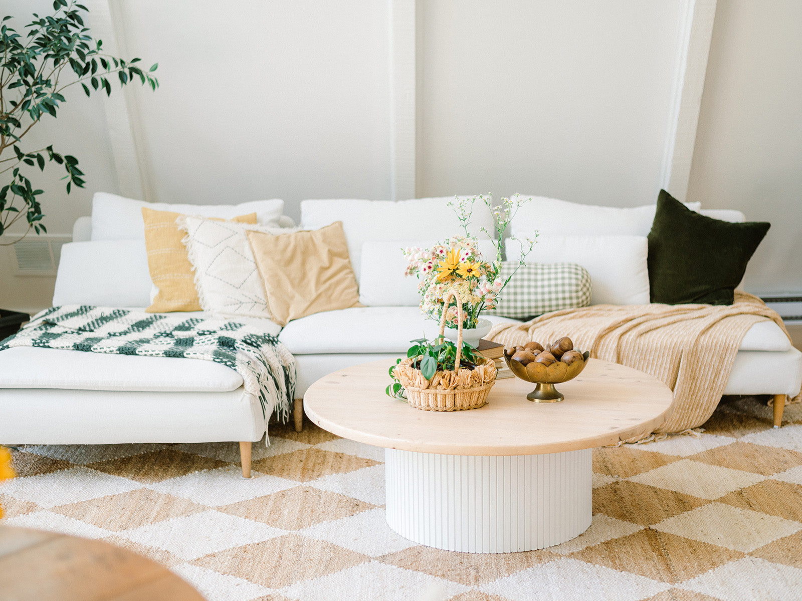 A: I always gravitate towards lighter, warmer tones. When we first started decorating, I went with all neutrals. White, cream, beige, and light browns. I added in warm tones like terracotta and peach, a little pink here and there, and of course green. I love nature and plants so much, so green is kind of like a neutral to me! I’ve started to add in a little more colour but usually stick to more muted, pastel tones. I love soft yellow, peach and pink tones to go with a neutral backdrop!