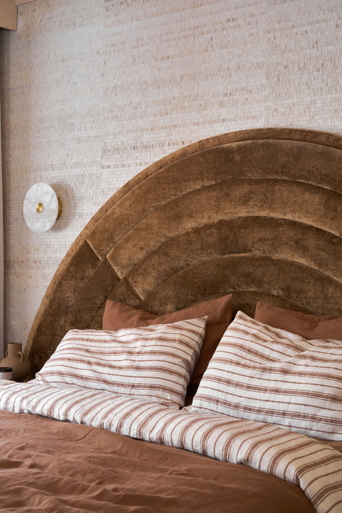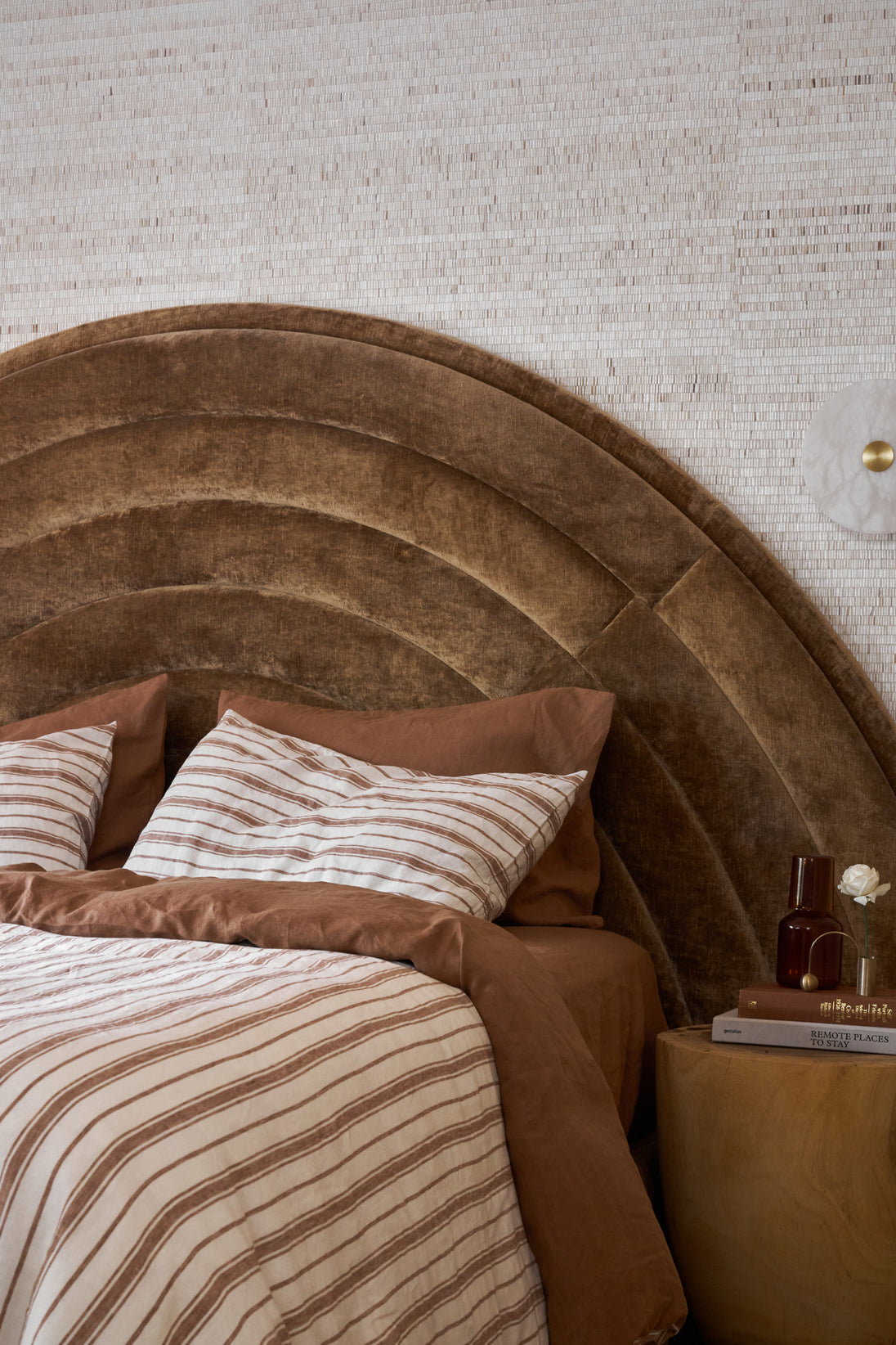 Linen is known for its effortlessly relaxed, naturally rumpled texture. It's full of charm and brings a lot of character to your room. Plus, there's no need to iron (huge win).