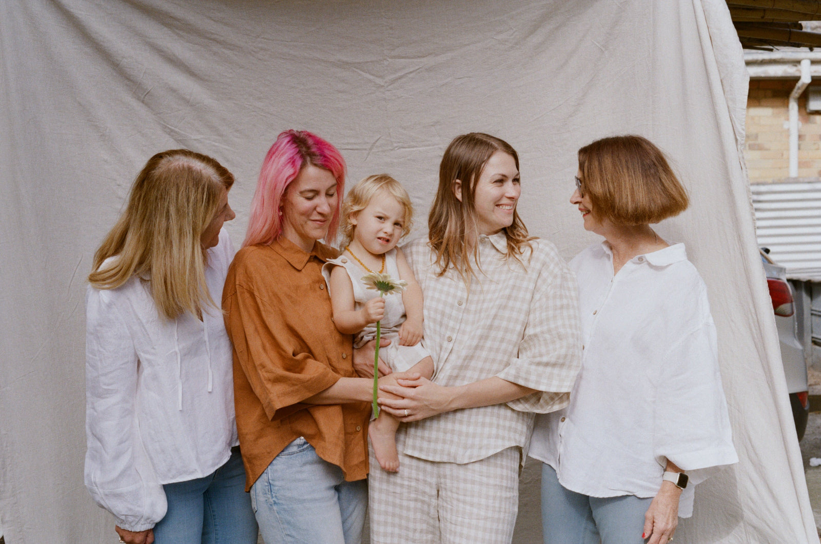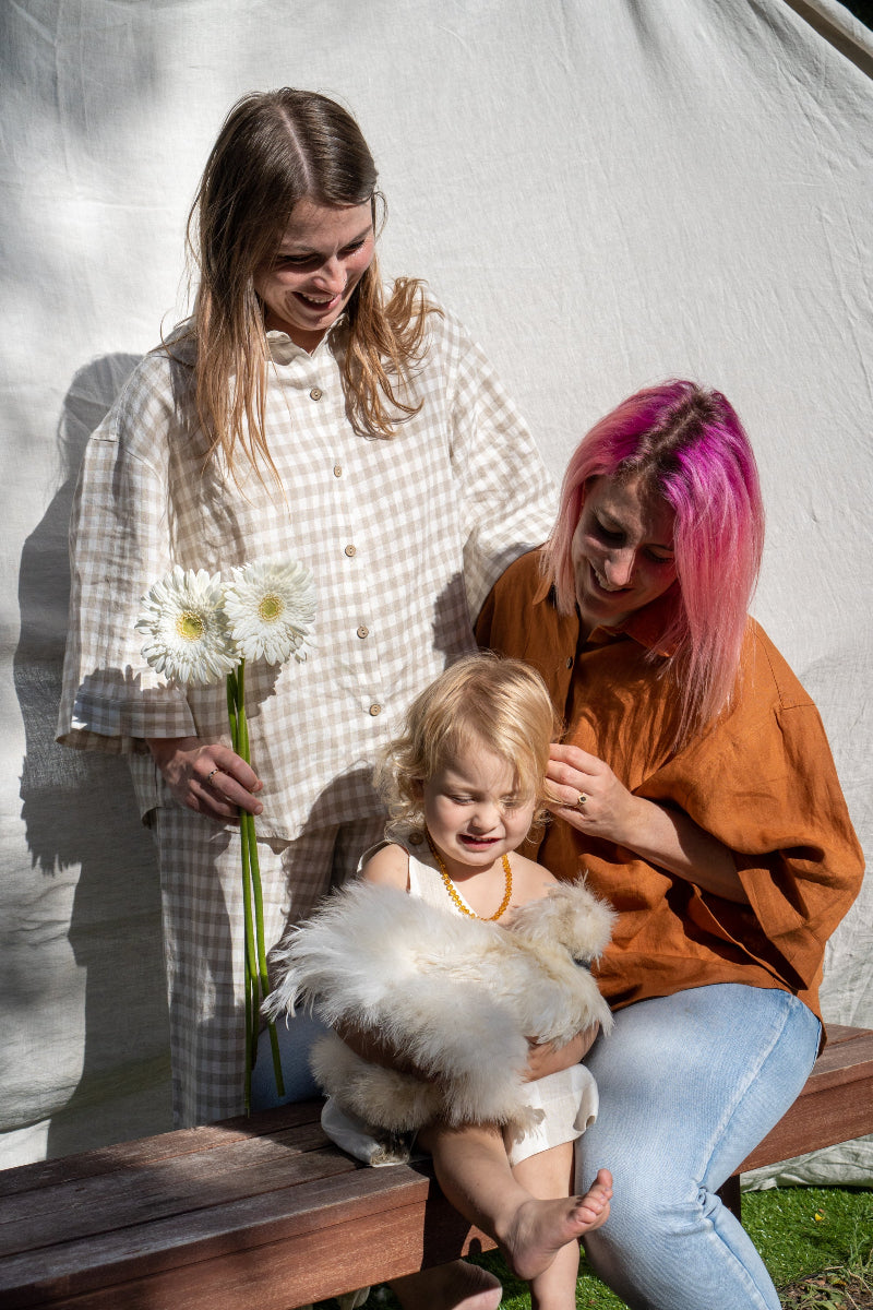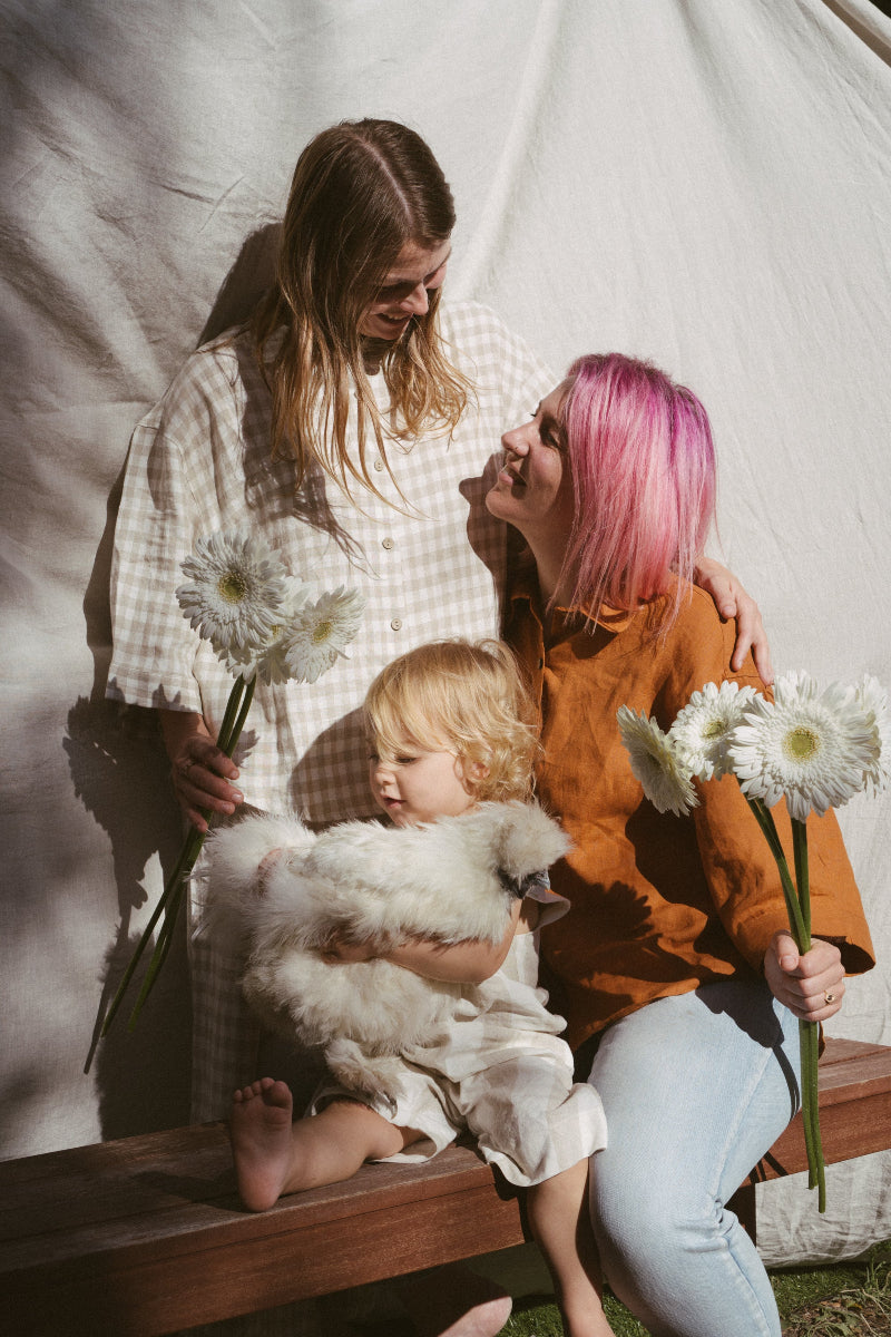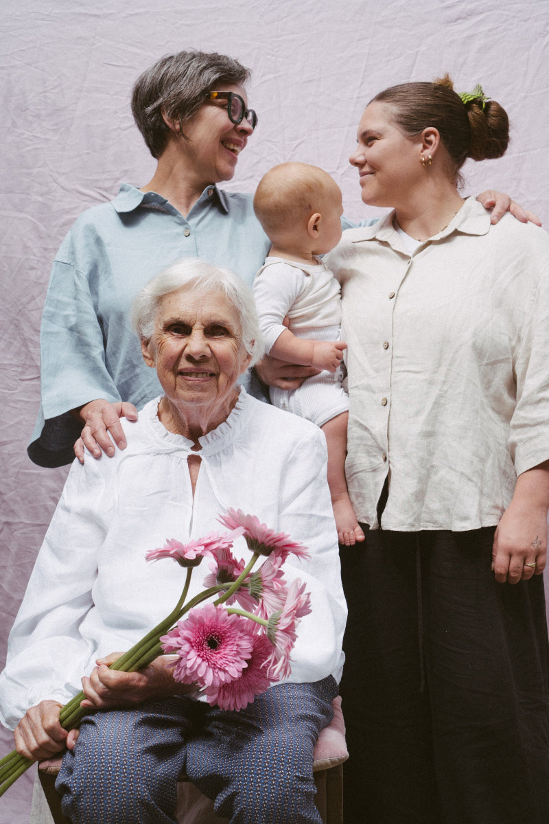 Tucked away in a cosy suburban street not too far from where our own Creative Director Lauren grew up as a child we met Claire and Hannah who raise their two daughters - on the day we met the gorgeous Marigold. We also were thrilled to have both of their mums, Jo and Angela to join to capture the three generations of women celebrating their interconnection.