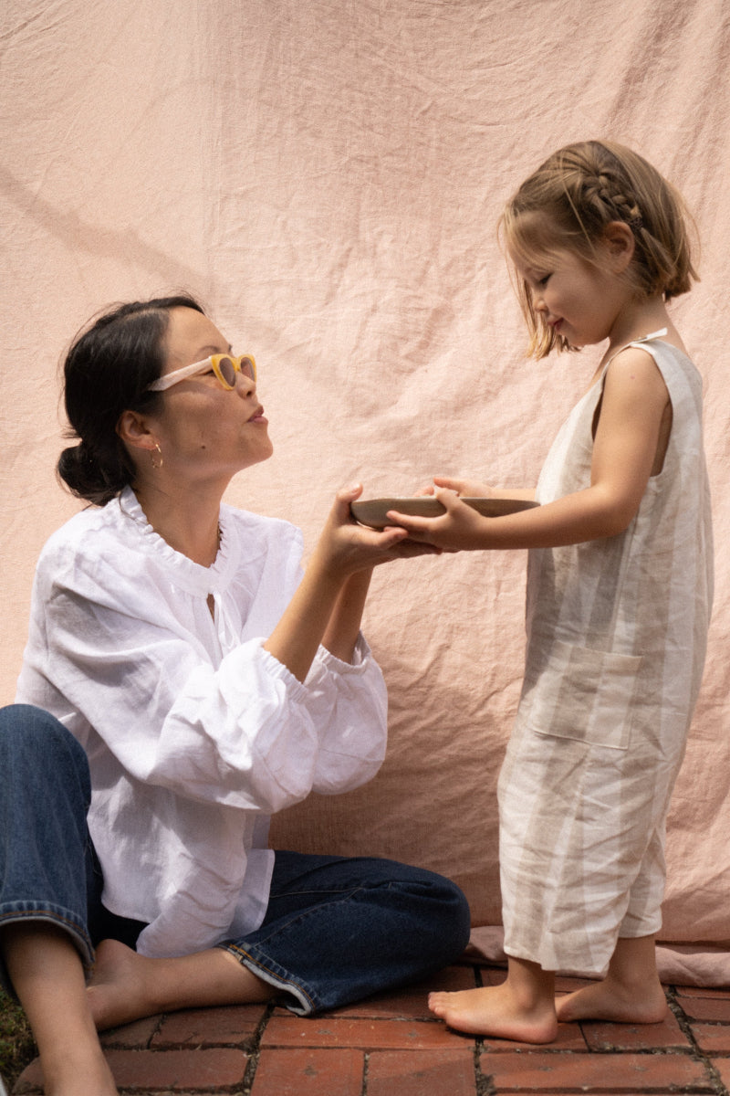 Meeting Yahna is like greeting a giant ball of wonderful wild energy. We had the joy of meeting her and her adorable daughter where we shot them against our Clay Flat Sheet and over the hours we spent chatted on all matter of topics while learning about her incredible women’s health business Radiant Birth.