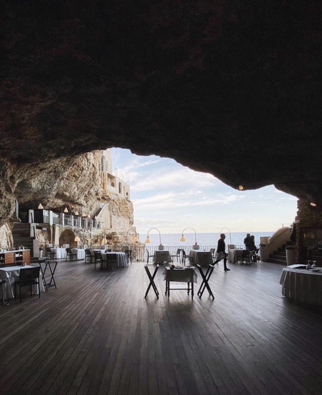 We invite you to discover Grotto Palazzese, Polignano a mare, Italy — hidden within a cave; this restaurant offers natural and timeless charm. Watch the ocean crash along the rocks while enjoying the refined menu in a once-in-a-lifetime location.