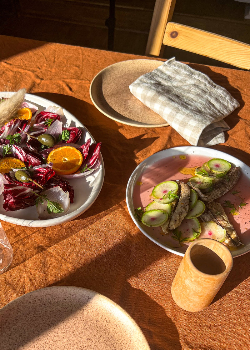 Welcome to the kitchen of Rebecca Taylor, aka @souley_nourished, where in a sun dappled corner of her kitchen in Los Angeles we learn to pull together a simple but on trend and simple supper that leans into the current tinned fish trend.