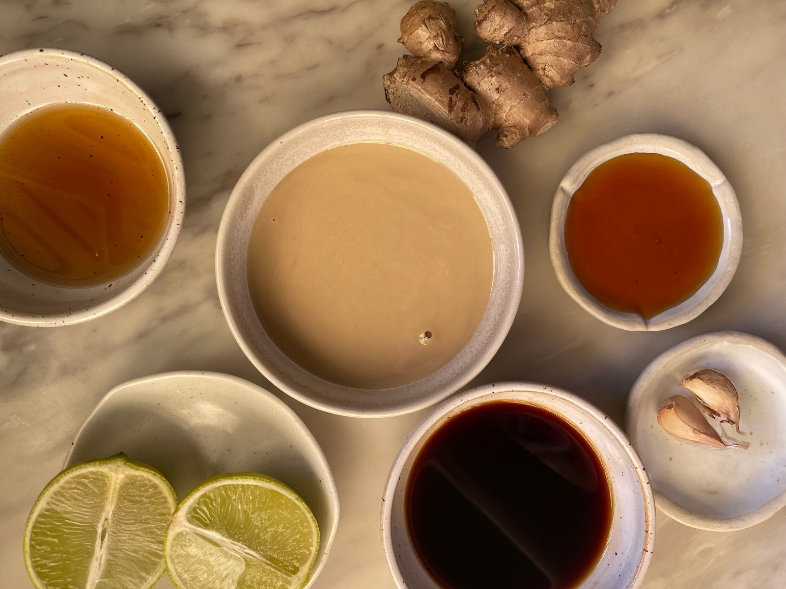 1. For the dressing place everything in small mixing bowl and whisk to combine.