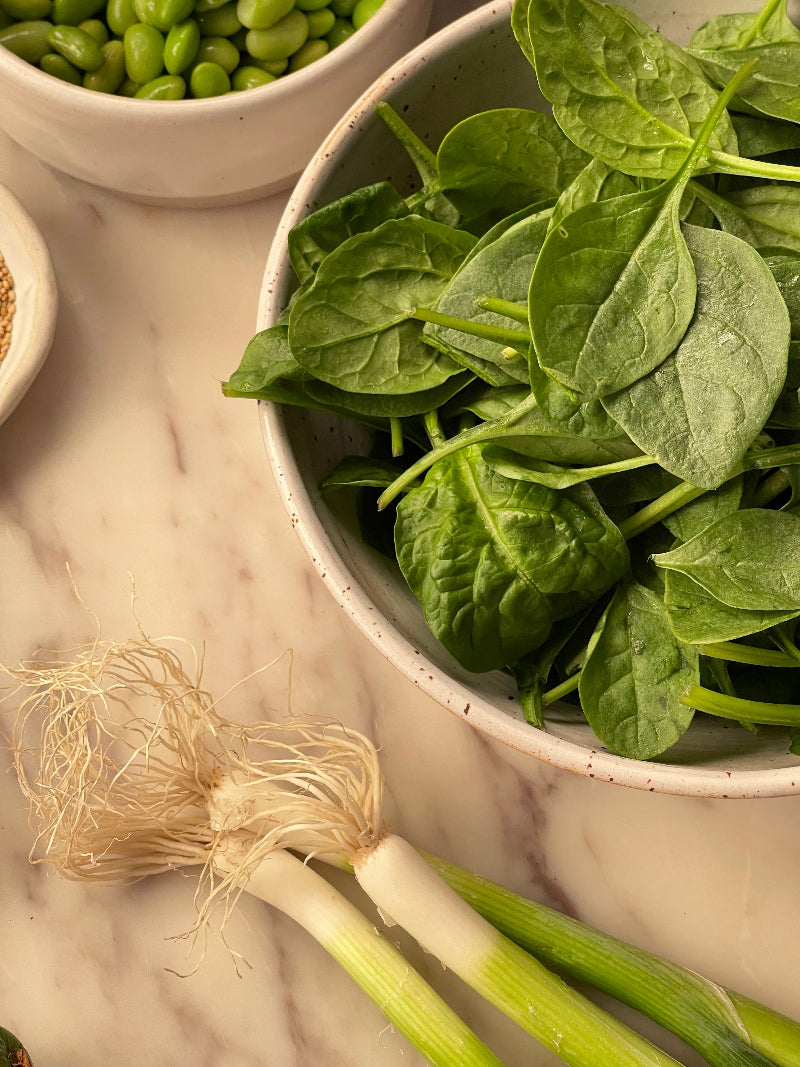 - 2 large handfuls baby spinach, cut into approx. 1cm strips