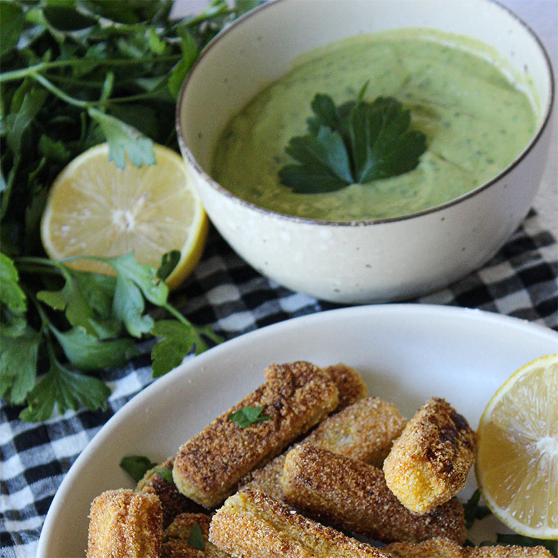 5. Plate the halloumi fries up alongside the dip and share with your favorite people!