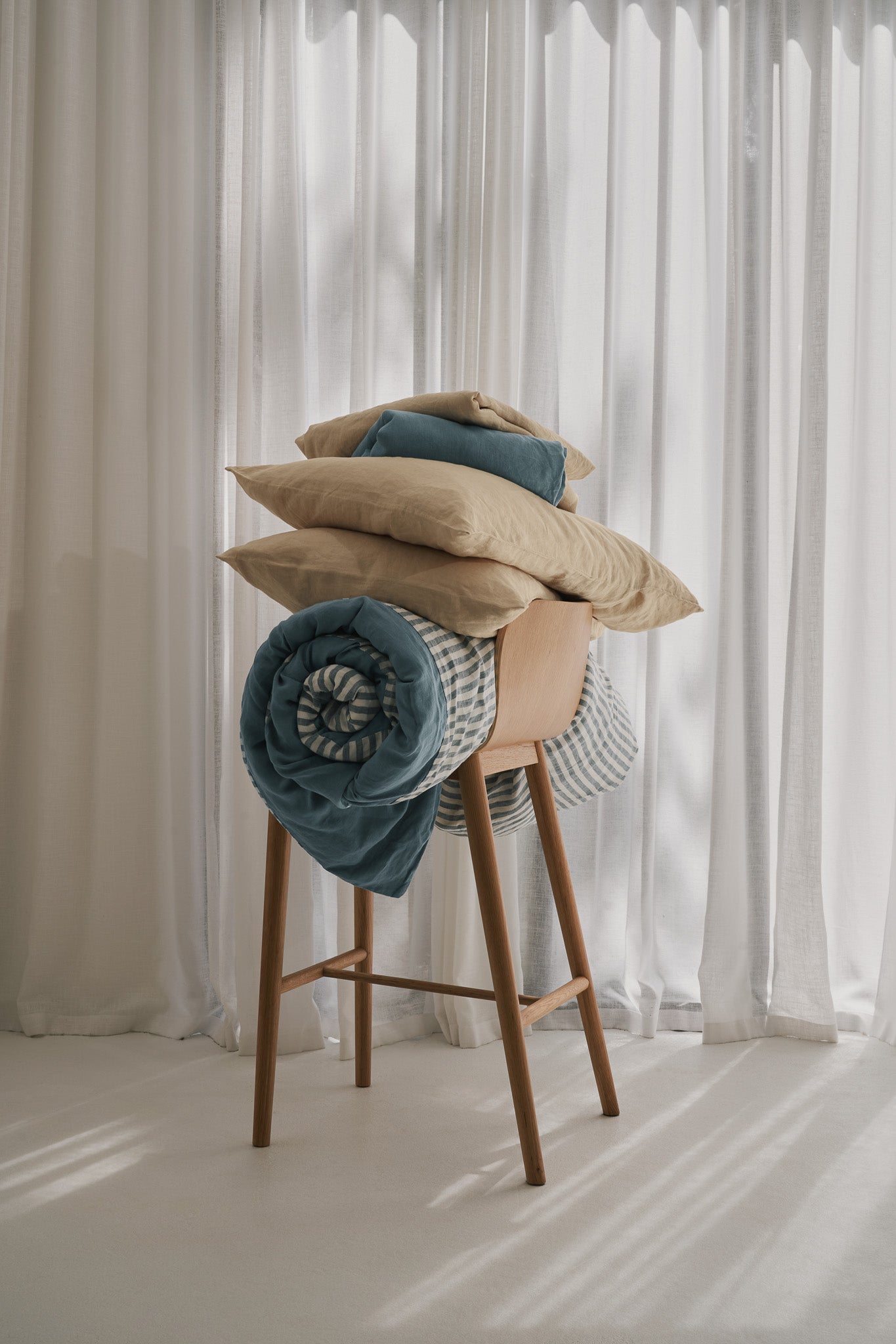 Our linen sheets, doona covers, fitted sheets, and flat sheets are designed for all seasons, keeping you cool in summer and warm in winter