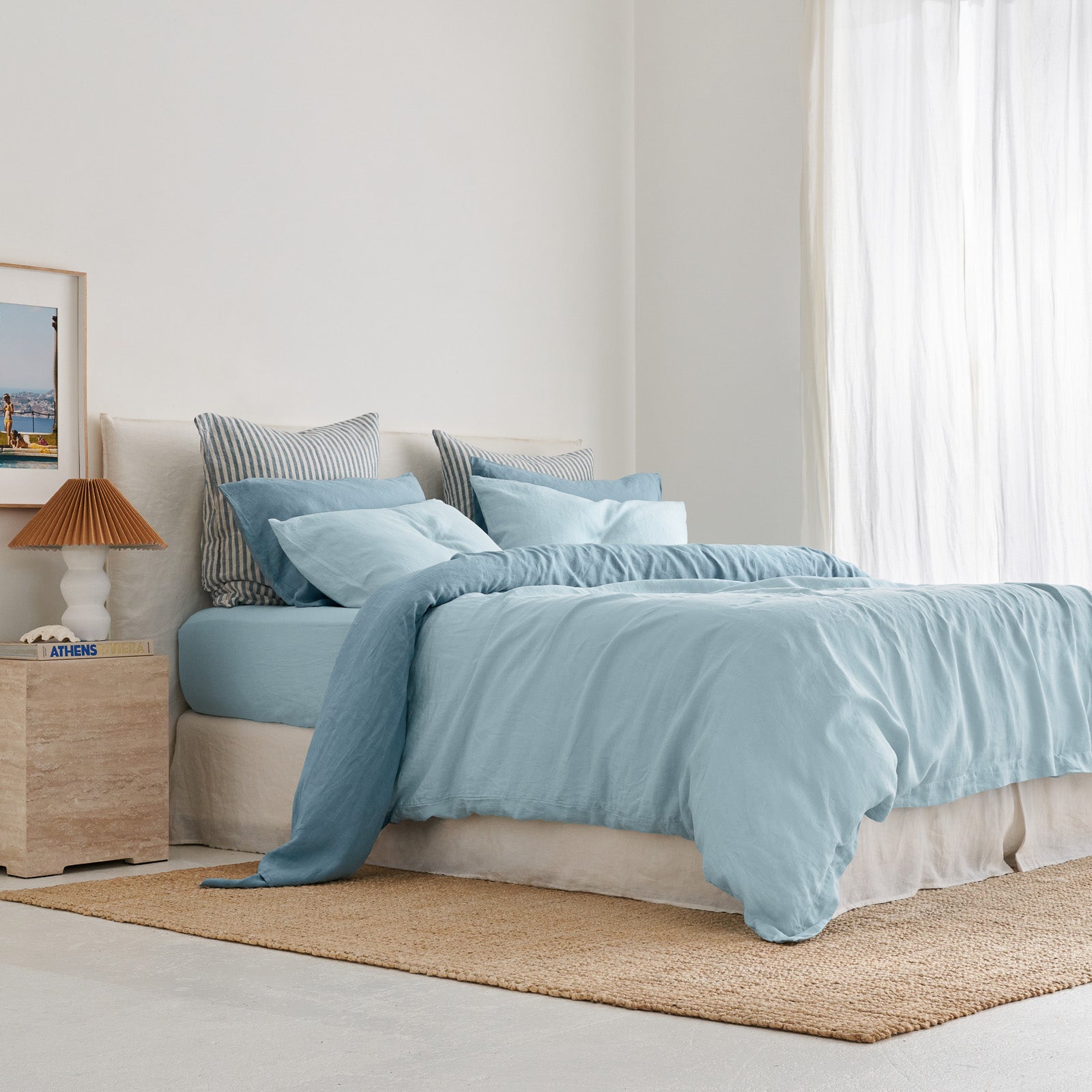 Curate the bedroom of your sweetest dreams with your new Sky Blue French Flax Linen Quilt Cover. Woven from premium French flax for that soft, ready-to-sleep-in feel from the very first night.
